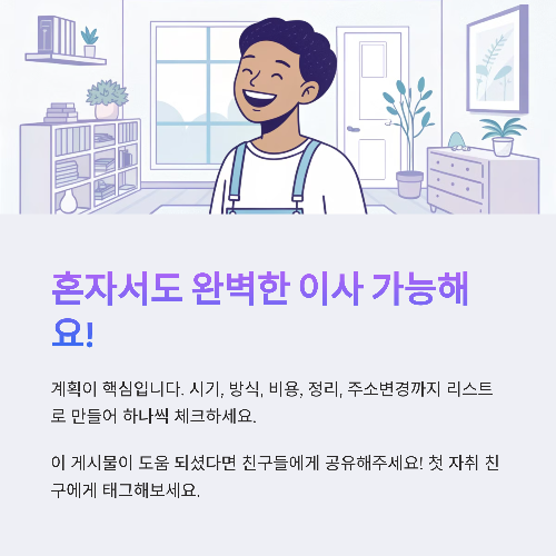 이 글이 여러분의 첫 혹은 다음 이사를 더 효율적으로 만드는 데 도움이 되길 바랍니다.