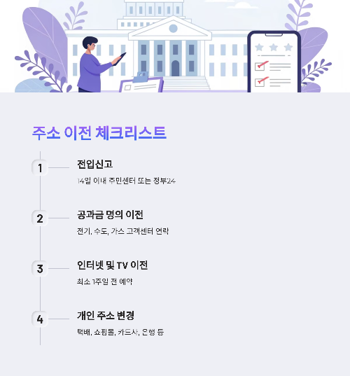 이사 후 가장 중요하지만 놓치기 쉬운 것이 ‘주소 변경’과 각종 명의 이전입니다.
